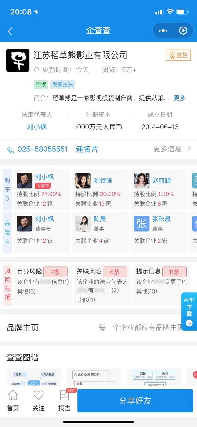行业内外对“稻草熊”应该都不陌生,毕竟,这家公司的明星光环相当之耀眼,根据企查查的数据显示,当前稻草熊影业的股东名单中仍然有刘诗诗和赵丽颖的名字。