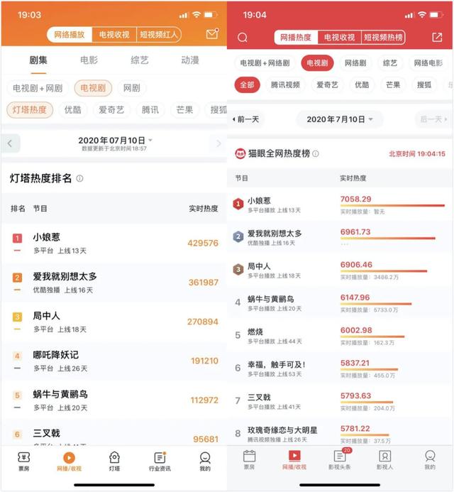 其次,来看看网端的表现。根据灯塔专业版和猫眼专业版数据显示,《局中人》在电视剧全网热度也是没出过前三。
