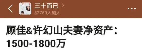 网友因此还推算出顾佳夫妇的净资产为1500-1800万。